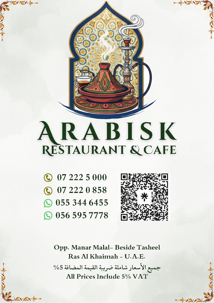 Arabisk Restaurant and Cafe, located at 26 Al Nuwawir St in Al Juwais, Ras Al Khaimah, United Arab Emirates, offers a unique Moroccan dining experience that stands out in the vibrant local food scene. Whether you're looking for a place to enjoy a solo meal or planning a gathering with friends, Arabisk provides a warm and inviting atmosphere perfect for any occasion.